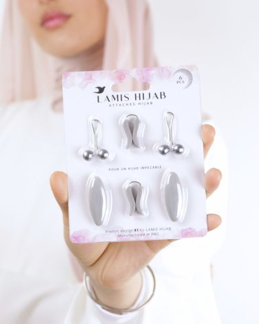 Lot 6 attaches hijab : 4 attaches anti Trou + 2 attaches à nourrice + 2 Attaches