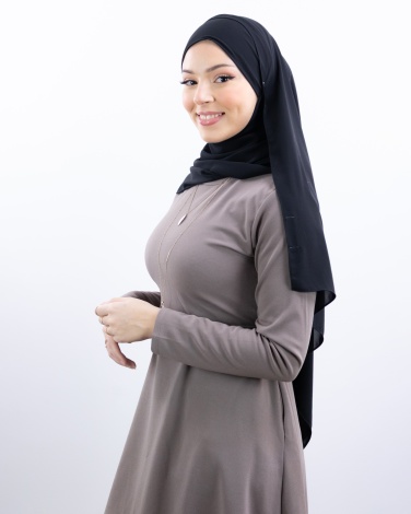 In 5 seconds flat: The ease and speed of putting on and tying this hijab make it a practical choice for busy women or those who are just starting with hijab. It offers a time-saving solution without sacrificing style, which is also beneficial for moms, allowing them to save valuable time for other aspects of daily life.