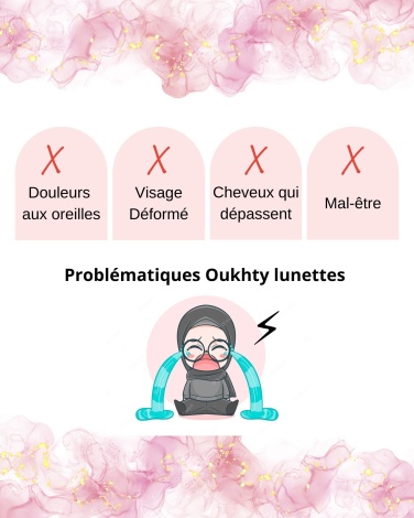 ❌ Discomfort related to the deformation of the shape of your face due to glasses worn with unsuitable hijabs.