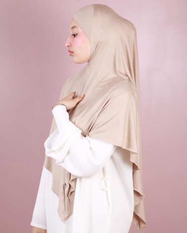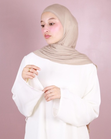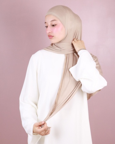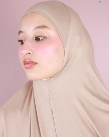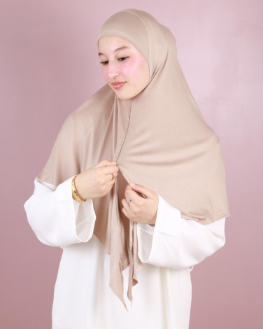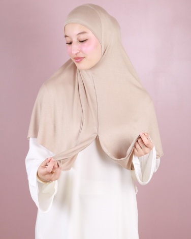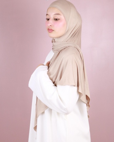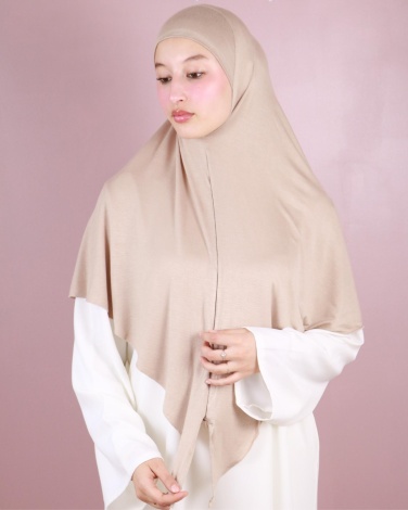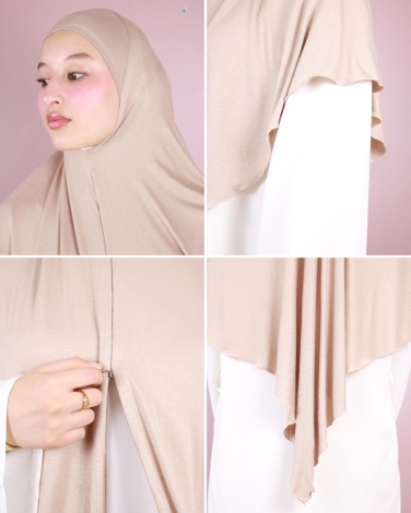 This is a jersey hijab featuring an integrated cap, also made of jersey, cleverly sewn directly onto the hijab. The ensemble is equipped with a zipper, providing convenience and ease of use. An ingenious solution for a hassle-free style.