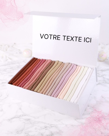 At Lamis Hijab, our commitment to you translates into offering the highest quality. Therefore, each product is carefully packaged in a box, laminated and glossy, made of high-quality rigid cardboard. We take pride in emphasizing that each box is unique thanks to customization specifically chosen by you.