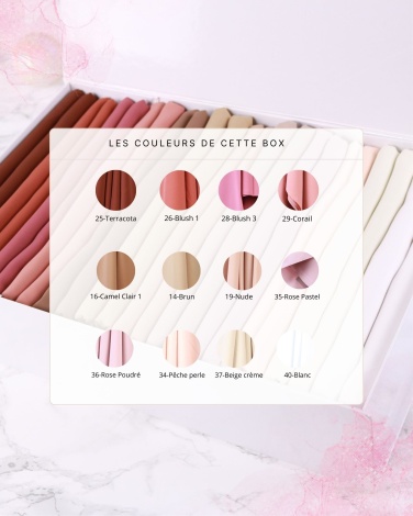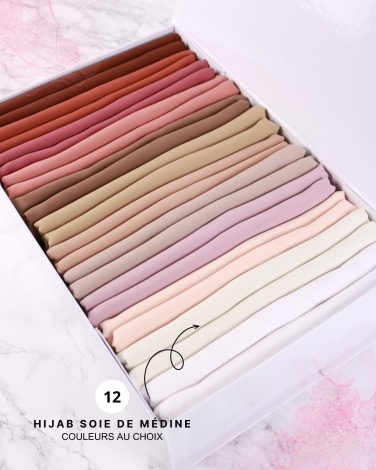 Compose your XXL hijab box, an exceptional collection of 12 Medina silk hijabs, a generous offering to delight a Muslim veiled woman. Each hijab in Medina silk embodies the lightness and elegance of this prestigious material, providing a diverse range of colors to complement your hijabi's style.