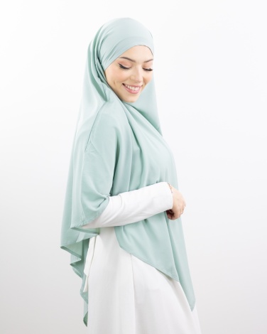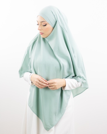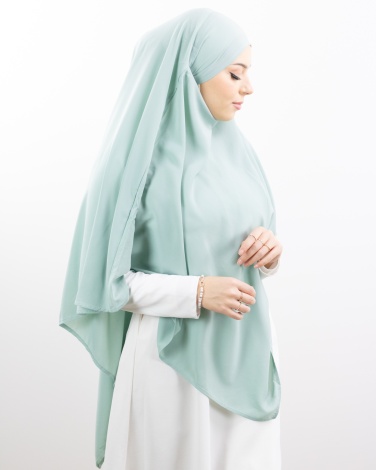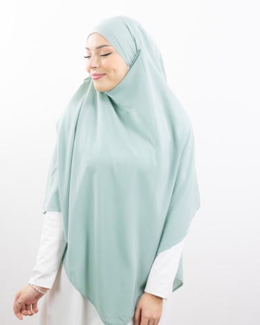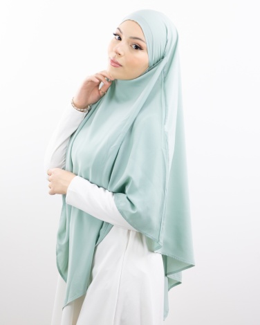 Khimar is a ready to wear hijab, it covers the back and the chest, it has a shape of a V in the front and the back. Made with a non-see-through and lightweight fabric. It can be used also as a top of a Jilbab or to Muslim pilgrimage to Mecca.