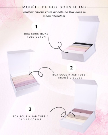 Get inspired by the unique style of the hijabi you cherish by selecting from these three categories of exquisite under-hijabs (it is possible to mix all 3 categories in the same box according to your preference):