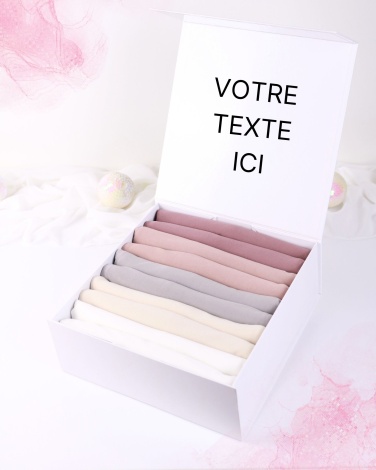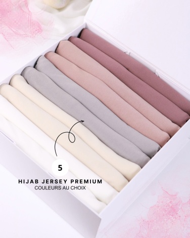 Create your XL Hijab Box with an exclusive collection of 5 jersey hijabs, an ideal option to spoil a Muslim veiled woman. Each jersey hijab embodies the union of comfort and elegance, offering a diverse color palette to complement your hijabi's style. Offer the Muslim veiled woman the opportunity to vary her looks with this XL Box, a meticulously crafted gift to enhance every occasion in her life.