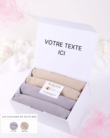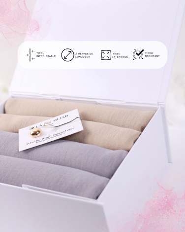 At Lamis Hijab, our commitment to you is reflected in offering the highest quality. Each product is carefully packaged in a box, laminated and shiny, made of premium quality rigid cardboard. We take pride in highlighting that each box is unique, personalized according to your choices.