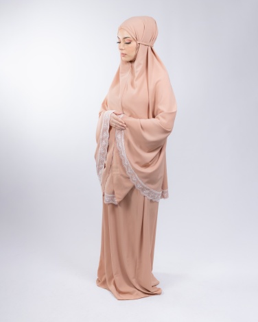 L'ensemble de prière a de jolies finitions en dentelle et tissu doublé au niveau de la tête.