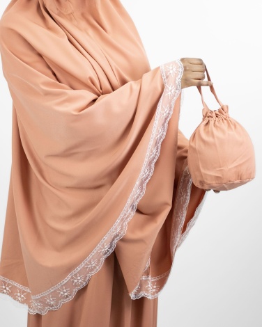 L'ensemble de prière a de jolies finitions en dentelle et tissu doublé au niveau de la tête.