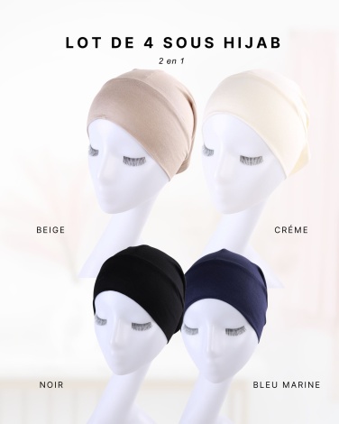 LOT DE 4 SOUS HIJABS 2 EN 1 (SIMPLE OU CROISÉ) : Beige / Créme / Noir / Bleu Marine