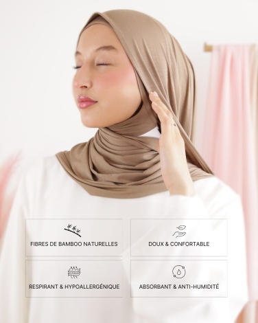 ✨ Ajoutez ce hijab en jersey de bambou à votre collection pour un look soigné et naturel et un confort incroyable.