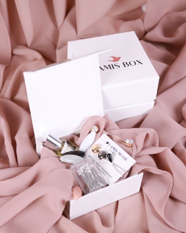 Chez Lamis Hijab, notre engagement envers vous se traduit par l'offre des plus hautes qualités. Ainsi, tous les accessoires sont soigneusement emballés dans une boîte, pelliculée et brillante, conçue en carton rigide de première qualité. Nous sommes fiers de souligner que chaque boîte est unique grâce à une personnalisation spécialement choisie par vos soins.