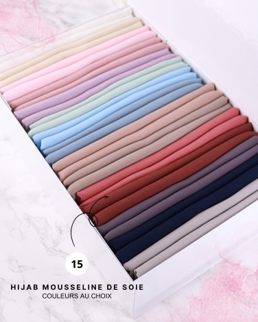 La box Hijab contient un lot de 15 hijabs mousseline de soie aux choix