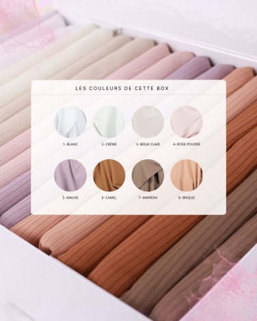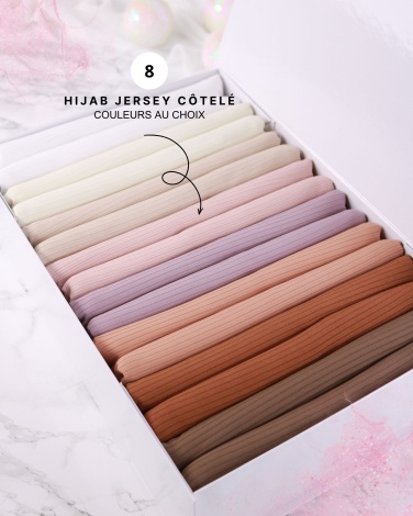 La box Hijab contient un lot de 12 hijabs jersey premium côtelé