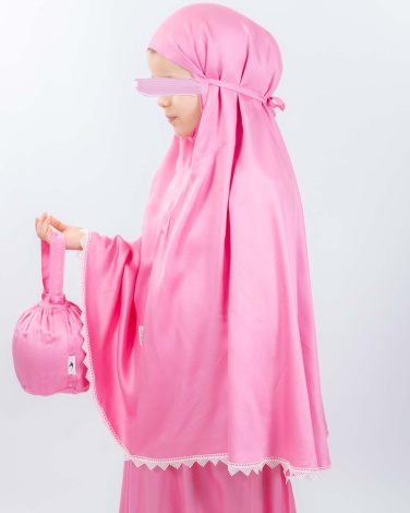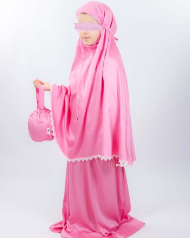 Haut (Le grand hijab à enfiler)  :  80-85 CM de longueur ET Bas (La jupe) :  90 CM de longueur Taille élastique.